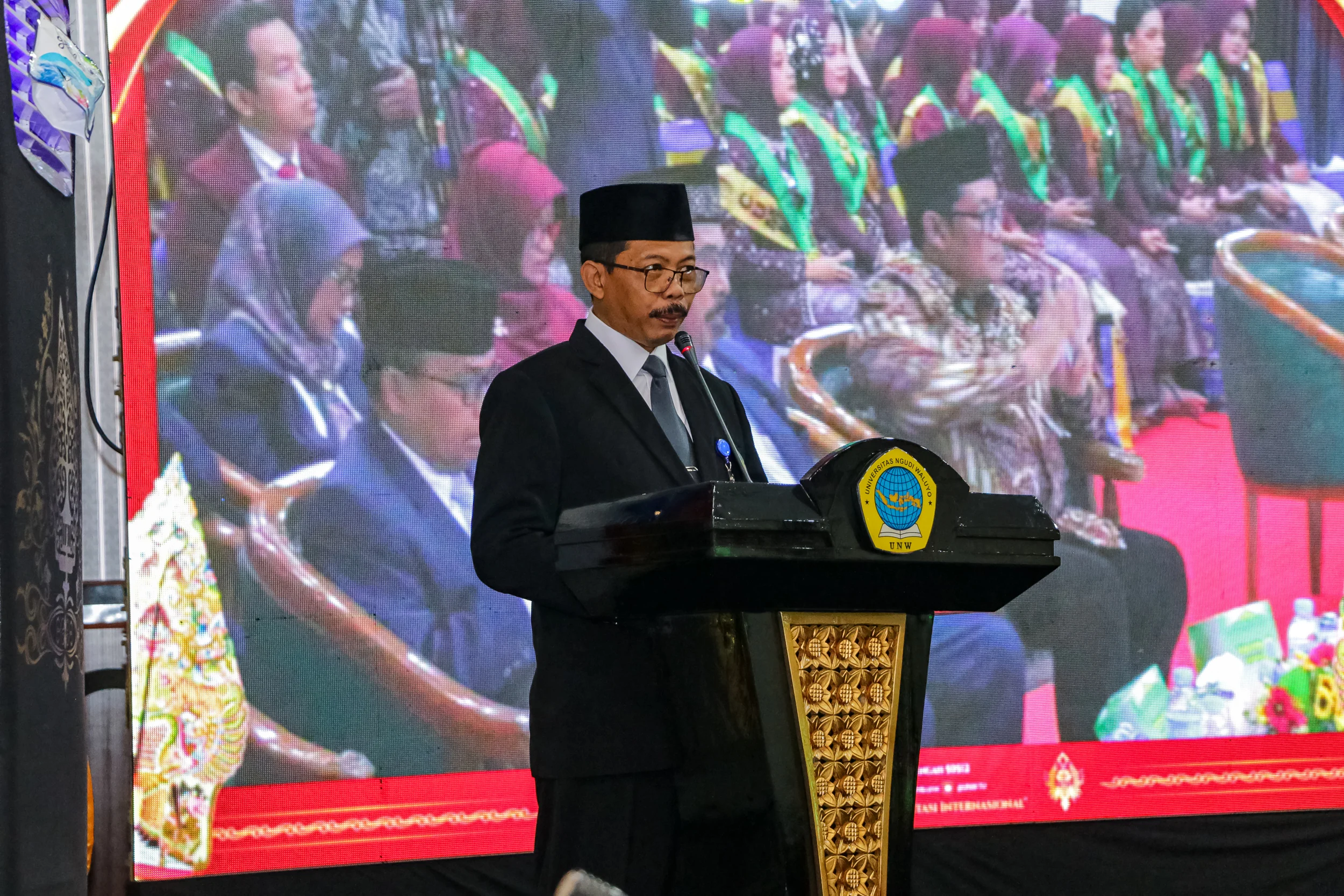 Pelaporan data akademik yang disampaikan oleh Wakil Rektor bidang Akademik dan Perencanaan, Dr. Sigit Ambar Widyawati, S.K.M., M.Kes menerangkan bahwa dengan penambahan 289 lulusan baru maka jumlah keseluruhan lulusan UNW sampai saat ini berjumlah 17.789 lulusan. Adapun rerata Indeks Prestasi Kumulatif lulusan pada sumpah profesi periode ini adalah 3,88 dengan 69 lulusan berpredikat Cumlaude/Dengan Pujian dan masyoritas lama waktu studi selama 2 semester. Dalam laporan yang diberikan, beliau juga berpesan kepada lulusan agar dapat mendukung Kemendiktisaintek pada Gerakan Diktisaintek Berdampak melalui peran lulusan dalam Aktualisasi Kampus Berdampak sebagai Keberlanjutan Kampus Merdeka, diantaranya (1) Lulusan memiliki civic responsibility dan kesadaran sosial tinggi, dan (2) Menjadi penggerak transformasi sosial dan ekonomi berbasis nilai, ilmu, dan teknologi.