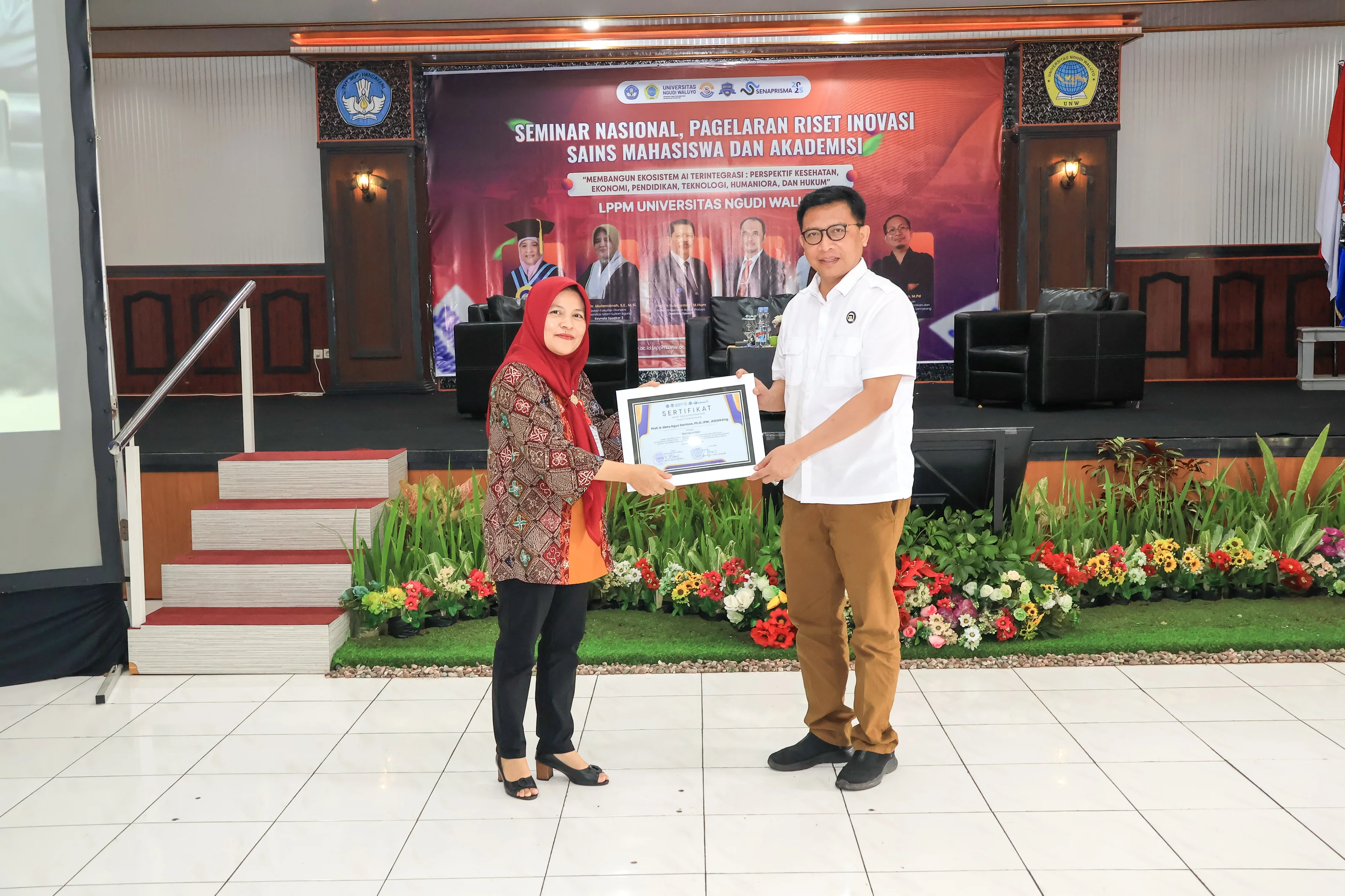 Ungaran, 11 November 2025 - Universitas Ngudi Waluyo (UNW) kembali menunjukkan komitmennya dalam menumbuhkan semangat riset dan inovasi melalui kegiatan Seminar Nasional dan Pagelaran Riset Inovasi Sains Mahasiswa dan Akademisi (SENAPRISMA) 2025. Tak sekadar forum akademik, kegiatan yang digelar oleh Lembaga Penelitian dan Pengabdian kepada Masyarakat (LPPM) UNW pada Selasa (11/11) ini menjadi ajang kolaboratif antara peneliti, akademisi, dan mahasiswa dalam memperkenalkan hasil karya unggulan yang berorientasi pada solusi nyata bagi masyarakat.
