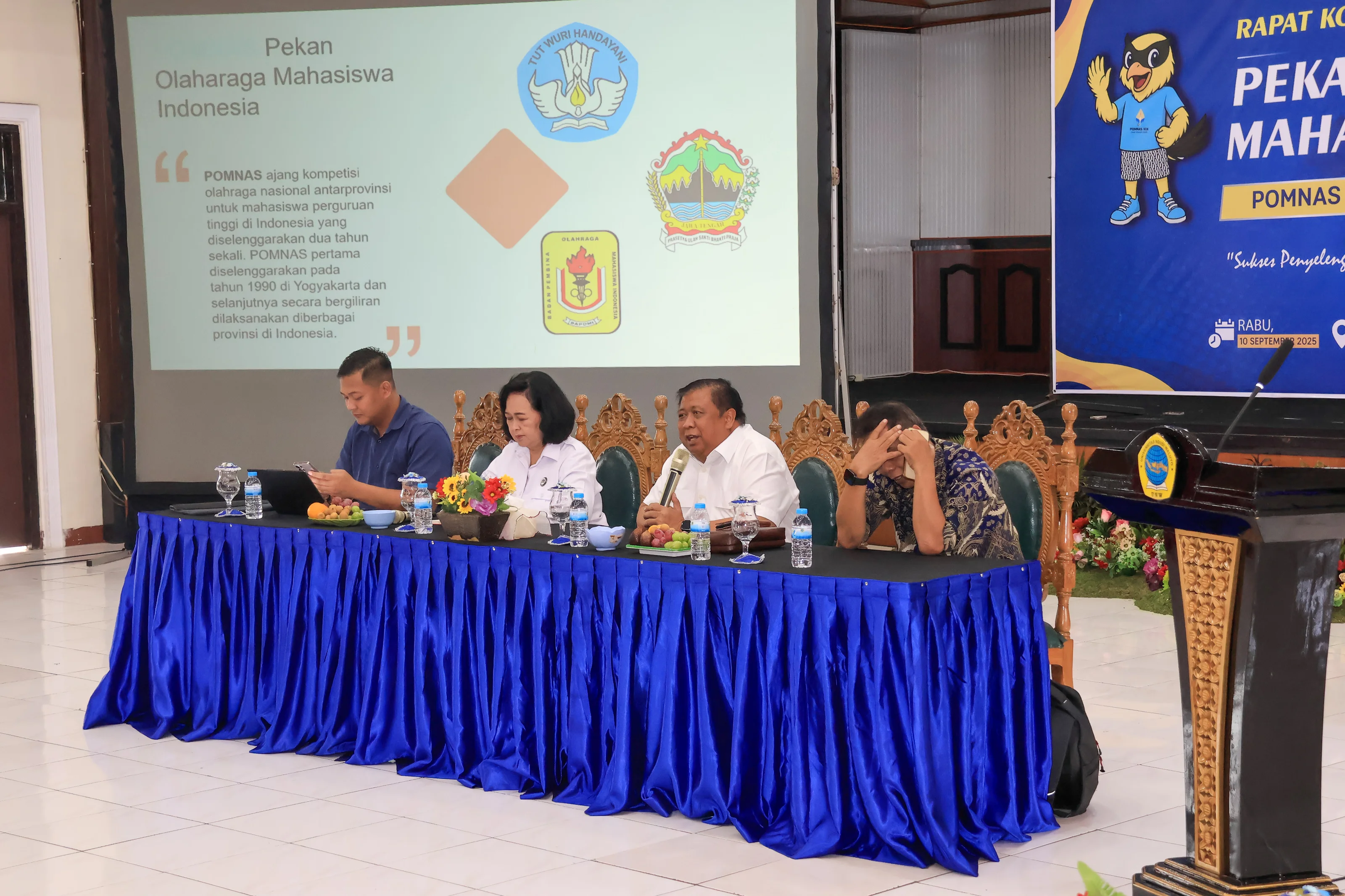 Materi juga disampaikan oleh Drs. Harsoyo, M.Si., dan Dr. Taufiq Hidayah, M.Kes., yang memberikan pemaparan kegiatan dan persiapan kontingen Jawa Tengah menuju POMNAS XIX Tahun 2025. Dalam penyampaian materinya, mereka menegaskan bahwa pihaknya berkomitmen untuk memberikan pelayanan terbaik. Dan diharapkan perguruan tinggi dapat memfokuskan persiapan atlet agar mereka dapat memberikan perform terbaik, serta menyerahkan segala persiapan akomodasi hingga fasilitas kepada panitia.