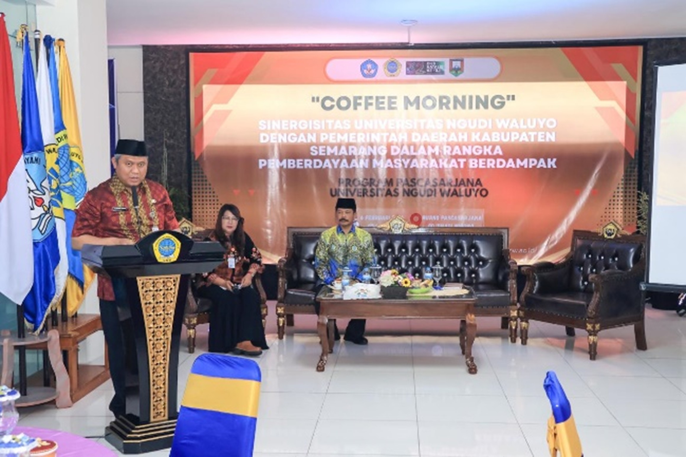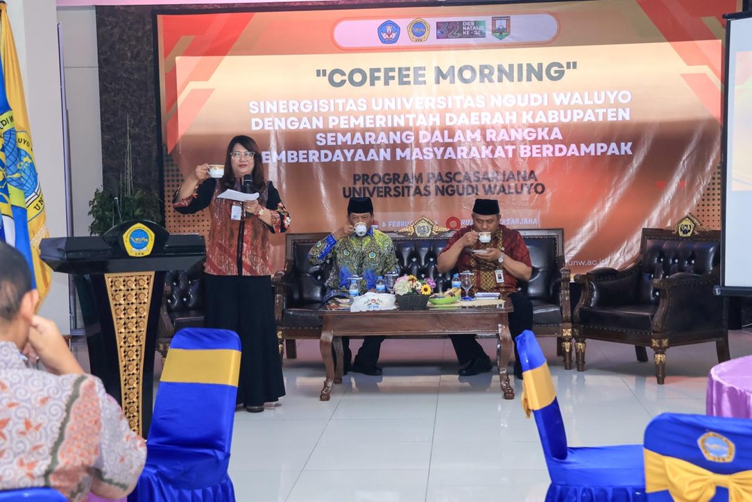 Ungaran, 6 Februari 2025 - Program Pascasarjana Universitas Ngudi Waluyo (UNW) menggelar kegiatan Coffee Morning bertema “Sinergisitas Universitas Ngudi Waluyo dengan Pemerintah Daerah Kabupaten Semarang dalam Rangka Pemberdayaan Masyarakat Berdampak” sebagai wujud komitmen penguatan kolaborasi multisektoral antara perguruan tinggi dan pemerintah daerah. Kegiatan ini menjadi bagian dari rangkaian Dies Natalis Universitas Ngudi Waluyo dan dilaksanakan di Lobby Gedung Ismadi Wibowo UNW pada Jumat (6/2).