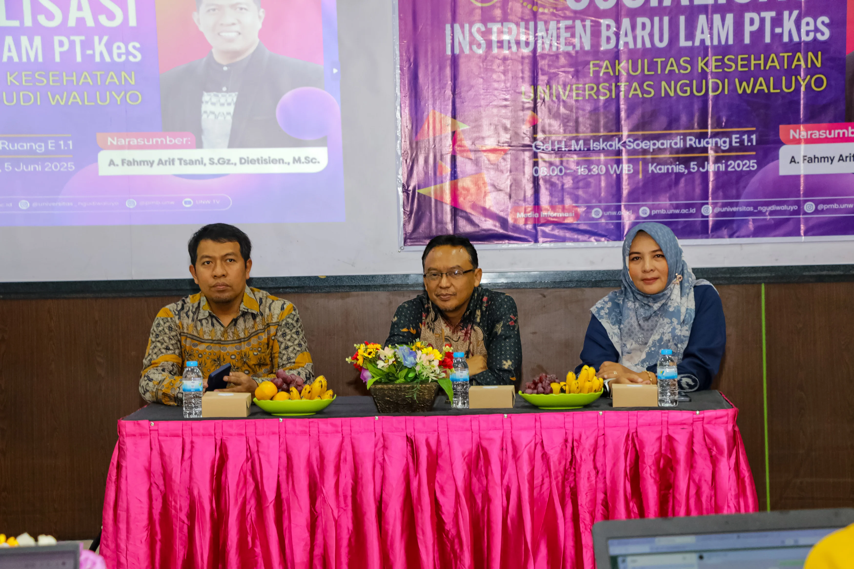 Ungaran, 5 Juni 2025 - Dalam komitmennya, Universitas Ngudi Waluyo (UNW) perkuat tekad untuk selalu memberikan performa terbaik dalam dunia pendidikan. Kegiatan Sosialisasi Instrumen Baru LAM-PTkes menjadi bukti nyata dalam praktik pengembangan universitas. Kegiatan ini dilaksanakan pada hari Kamis (5/6) di Gedung H.M Iskak Soepardi Ruang E.1.1. Dengan mengundang narasumber Asesor Lembaga Akreditasi Mandiri Perguruan Tinggi Kesehatan (LAM PT-Kes), A. Fahmi Arif Tsani, S.Gz., Dietisien.,M.Sc., serta dihadiri oleh segenap civitas Fakultas Kesehatan UNW.
