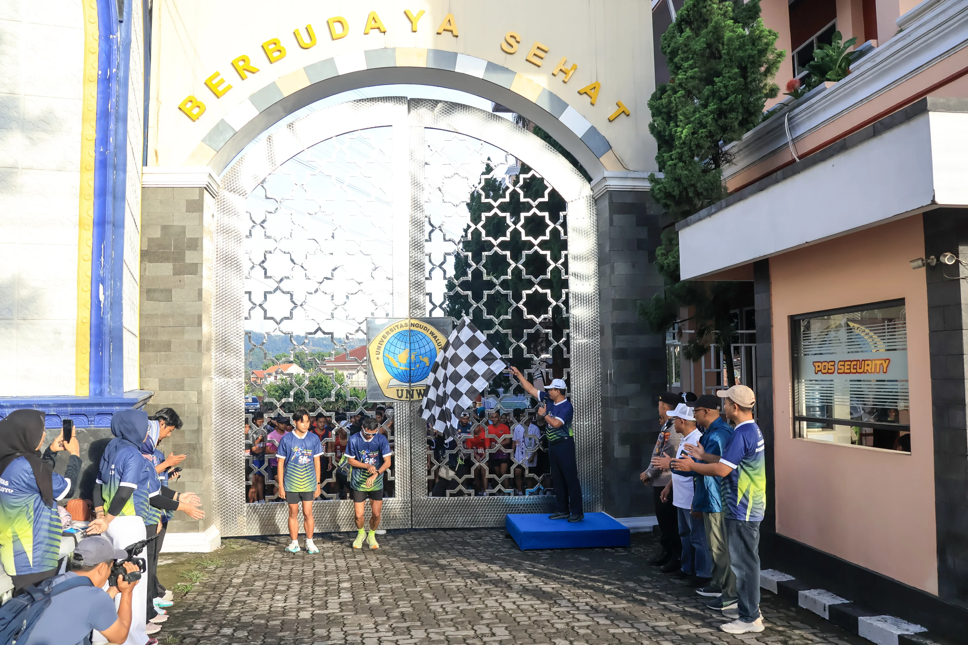Ungaran, 2 November 2025 - Universitas Ngudi Waluyo (UNW) kembali menebar budaya sehat melalui kegiatan UNW 5K Fun Run 2025 yang digelar pada hari Minggu, 2 November 2025. Mengusung tema “Fun, Fit, and Future”, kegiatan ini tidak sekadar menjadi ajang olahraga bersama, tetapi juga momentum bersejarah dengan diresmikannya UNW Health Culture Arena yakni “Mandala Arogya Sanskriti”. Gelaran UNW Fun Run 2025 dimulai dari Pintu Gerbang Garuda UNW dan berakhir di Kampus 2 UNW, tepatnya di area Health Culture Arena. Sejak pagi, ratusan peserta telah memadati area registrasi dengan penuh antusiasme. Kemeriahan semakin terasa ketika Rektor Universitas Ngudi Waluyo, Prof. Dr. Subyantoro, M.Hum., secara resmi melepas peserta lari, menandai dimulainya perjalanan penuh semangat sejauh lima kilometer.