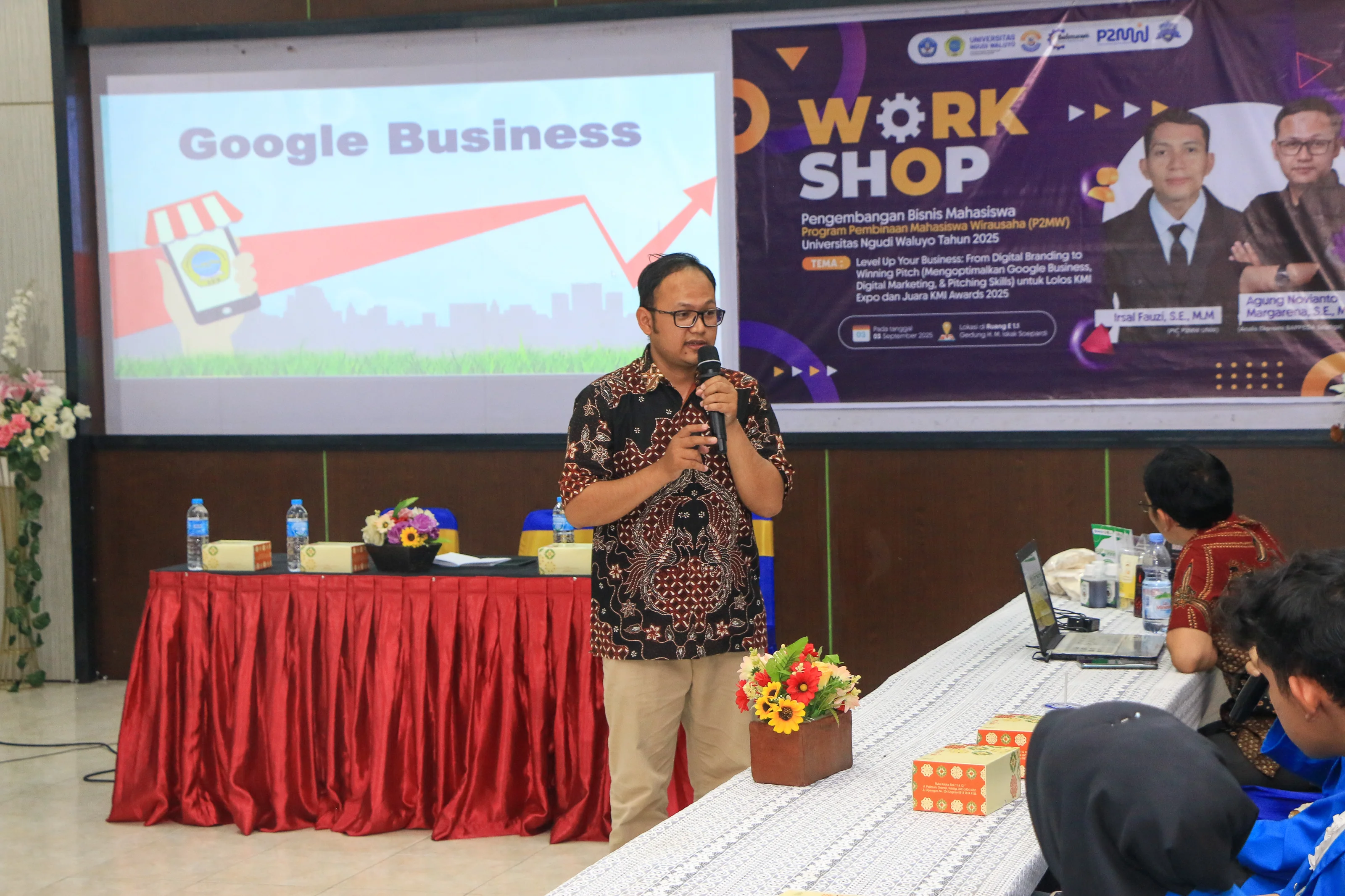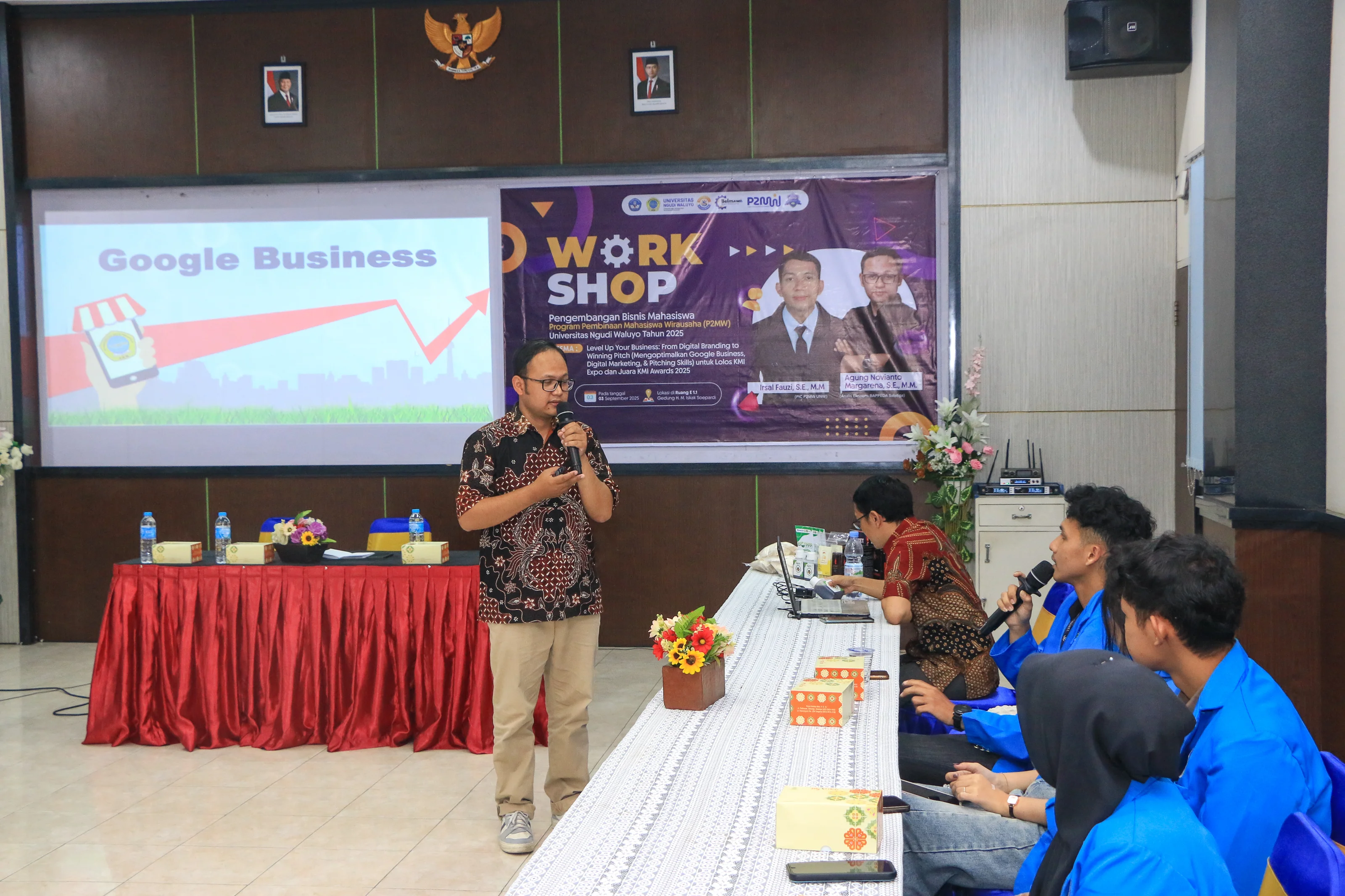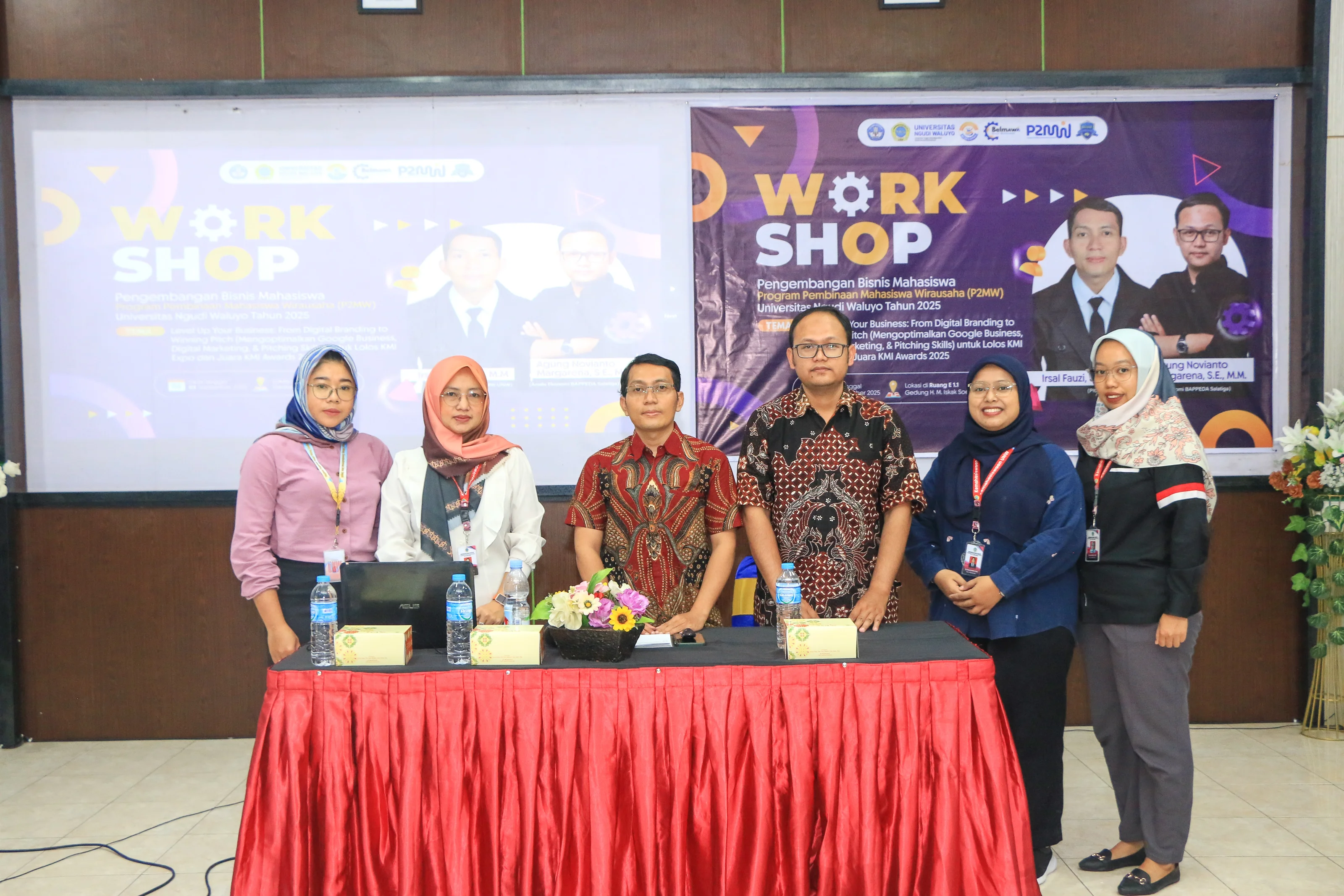 Kegiatan Workshop Pengembangan Bisnis Mahasiswa P2MW tahun 2025 ini diselenggarakan sebagai upaya mendorong penguatan ekosistem kewirausahaan di lingkungan perguruan tinggi dalam rangka pelaksanaan program P2MW. Mengusung tema “Level up your bussinness: from digital branding to winning pitch (Mengoptimalkan Google bussiness, digital marketing, & pitching skills) untuk lolos KMI expo dan juara KMI Awards 2025”. Dihadiri oleh Irsal Fauzi, S.E., M.M., selaku PIC P2MW sekaligus narasumber; Agung Novianto Margarena, S.E., M.M., sebagai narasumber; Ari Ivayanti Ardik Sholikha, S.Pd., Kabag. Perencanaan dan Pengembangan; Senja Dwi Prasetiani, S.Tr.Ak., Kabag. Kemahasiswaan dan Alumni beserta jajarannya.